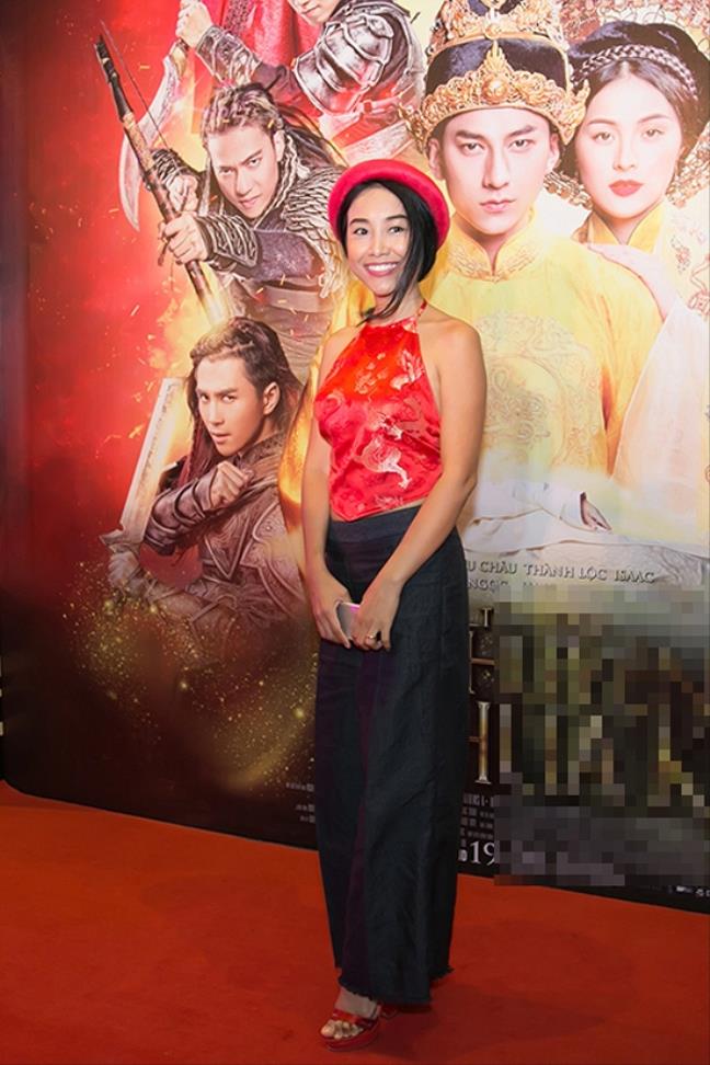 Đoan Trang diện áo yếm đỏ, vấn khăn đi sự kiện nhưng lại kết hợp với quần ống loe, gấu tua rua khiến mọi người suýt "ngất".