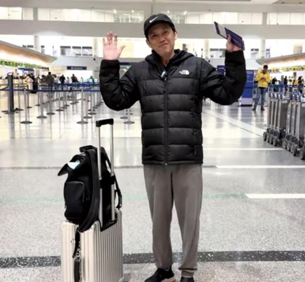 Tại sân bay, Hoài Linh ăn mặc giản dị, hành lý đơn sơ và vội vàng chia sẻ thật ngắn gọn để kịp giờ lên máy bay: “Tôi xin kính chào quý vị. Tôi đang ở ngoài sân bay Los Angeles để lên chuyến bay về lại Việt Nam sau chương trình kỷ niệm 30 năm của trung tâm Thúy Nga.