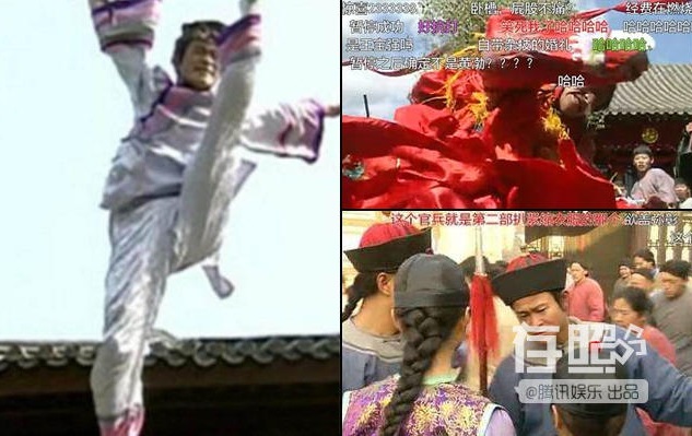 Ngoài ra trong cảnh múa lân của Yến Tử lại do một nam diễn viên đóng thế khác đóng, anh có gương mặt được nhiều khán giả cho rằng rất có thể đó là “Ảnh đế” Hoàng Bột khi chưa nổi tiếng (ảnh trên bên phải). Người còn lại ngoài đóng thế cho Triệu Vy, anh còn vào vai một binh sĩ và nhiều lần xuất hiện trên màn ảnh (ảnh dưới bên phải).