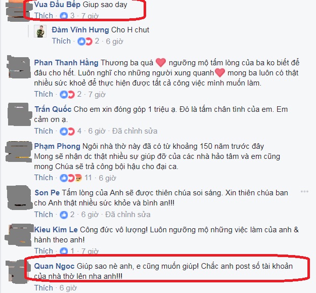 Bản thân Hưng trước mắt sẽ trích 50 phần trăm tiền lương của 3 đêm diễn tại phòng trà sắp tới 12,19,20 và một event vào ngày 10 của trường đại học quốc tế HIU để gửi ra cho các Cha ở đó có thêm nguồn hỗ trợ để xây lại nhà thờ...Cầu xin Chúa soi sáng và ra tay làm phép nhiệm màu để có nhiều sự đóng góp từ khắp nơi".
