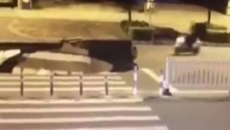 Đoạn video do camera giám sát ghi lại tại một thành phố ở Trung Quốc cho thấy mặt đất bất ngờ sụt lún vào lúc đêm vắng, tạo ra hố tử thần nằm giữa đường phố.