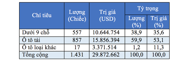 (* Tỷ trọng là tỷ trọng nhập khẩu từng loại ô tô trong tổng số ô tô nguyên chiếc các loại)