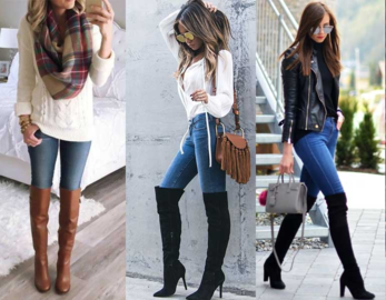 Bốt cổ cao, gót nhọn cùng tông màu với quần jeans giúp "ăn gian" chiều cao khá hiệu quả. Tuy nhiên, nếu màu của bốt và quần đều là tông màu tối (đen, nâu, xanh đậm...), người mặc nên chọn áo khoác màu sáng để làm nổi bật bộ trang phục.