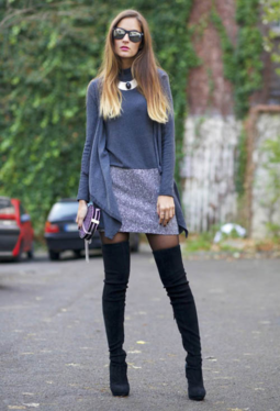 Nếu chọn cách phối đồ này, hãy lưu ý váy, bốt và tất phải cùng tông màu để không gây hiệu ứng đứt đoạn làm người mặc có cảm giác bị lùn hơn.