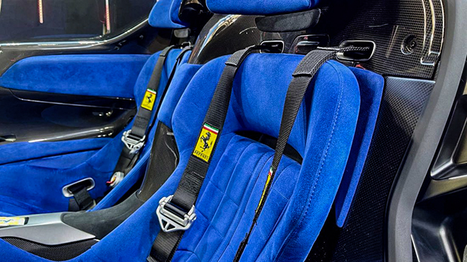 Bên trong, Ferrari thiết kế khoang lái của Daytona SP3 với bộ ghế tích hợp vào khoang lái. Ghế ngồi làm bằng sợi carbon giờ đây là một phần của bảng điều khiển trung tâm. Khách hàng vẫn có thể lựa chọn vật liệu bọc ghế theo ý mình như da thuộc kiểu cổ điển, da cổ điển, da lộn và nỉ. Nhờ tích hợp ghế vào khoang lái, vị trí lái của Ferrari Monza SP3 sẽ thấp hơn nhiều so với những mẫu xe khác.