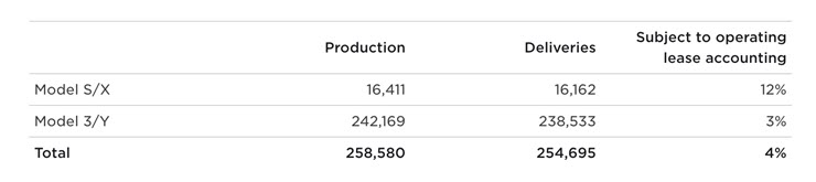 Giống như các quý khác trong vòng 2 năm qua, hầu hết các xe được sản xuất và phân phối là Model 3 và Model Ys. Những mẫu cũ hơn là Model S và Model X chỉ có 16.411 xe được sản xuất.