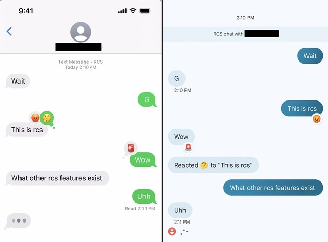 Tuy nhiên, một số người dùng đã phát hiện ra cách kích hoạt RCS trên iOS 18 beta 1. Sau đó, họ tiến hành tương tác trực tiếp với thiết bị Android và vén màn những tính năng mà RCS mang lại cho cả hai nền tảng như thông báo đã đọc, chỉ báo đang nhập nội dung, phản hồi cảm xúc với emoji và gửi dữ liệu. Đáng chú ý, RCS dường như cũng hoạt động trong các cuộc trò chuyện nhóm, nhưng hiện vẫn chưa hỗ trợ thông báo mọi người đã đọc tin nhắn.