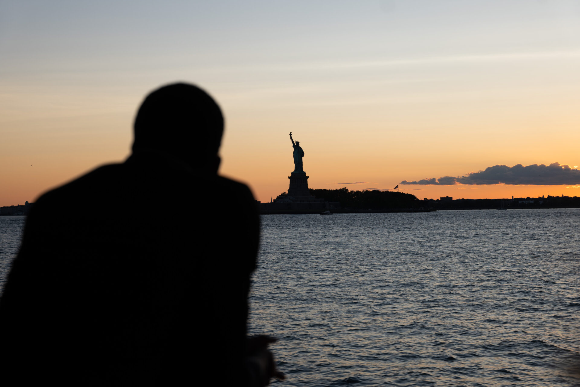 Một người nhìn ra Tượng Nữ Thần Tự Do ở New York ngày 1 Tháng Bảy, 2024, khi Tối Cao Pháp Viện ra phán quyết quyền miễn truy tố tuyệt đối dành cho tổng thống Hoa Kỳ (Hình: Spencer Platt/Getty Images)