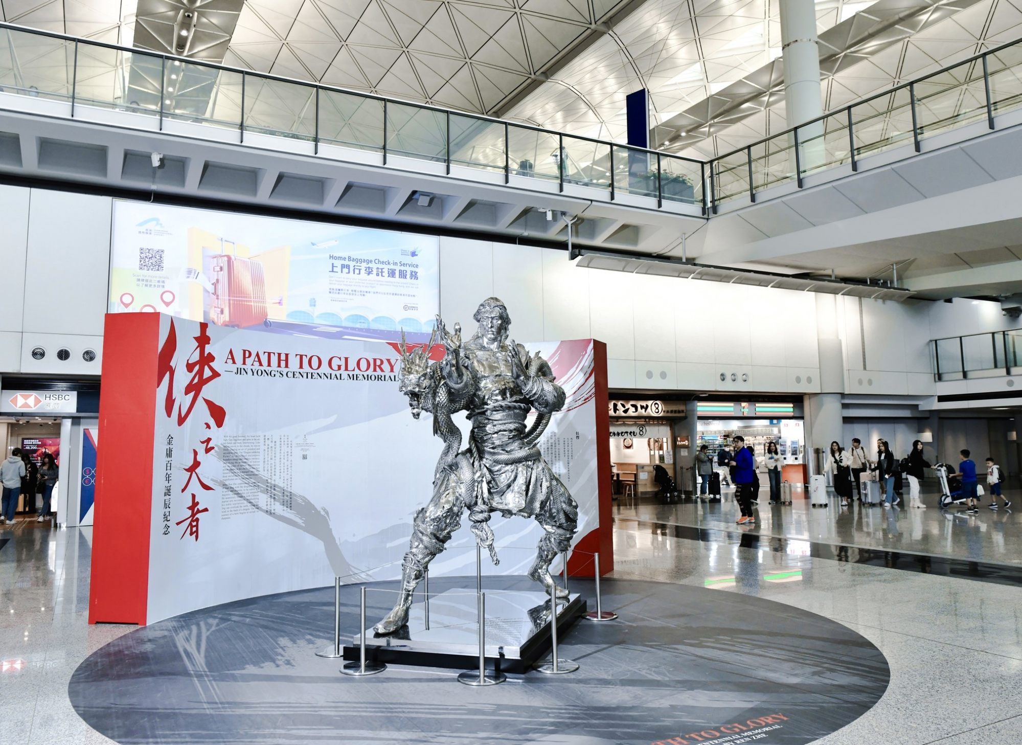 Tượng Quách Tĩnh tại Sảnh đến Nhà ga số 1 tại Sân bay Quốc tế Hồng Kông. Ảnh: hongkongairport