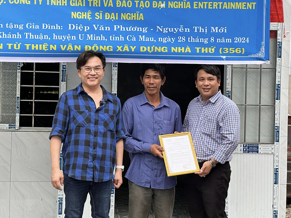 Đại Nghĩa đi trao nhà tình thương hôm 28/8. Ảnh: FBNV
