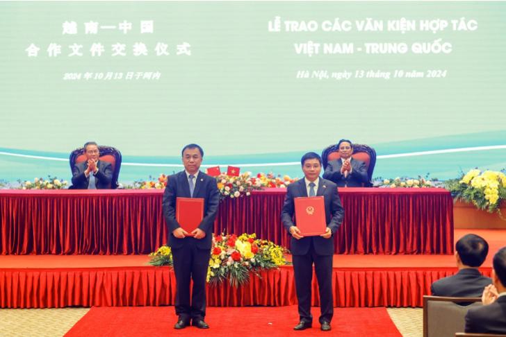Báo Tuổi trẻ loan tin, trưa 13 tháng 10 năm 2024, ông Phạm Minh Chính, Thủ tướng Cộng sản Việt Nam và người đồng nhiệm Trung Cộng là Lý Cường đã chứng kiến việc trao văn kiện hợp tác hai bên, nhân dịp ông Cường thăm Việt Nam. Có 10 văn kiện hợp tác đã được chứng kiến gồm. Thứ nhất là, bản ghi nhớ giữa Bộ Giao thông vận tải Việt Nam và Uỷ ban Cải cách và Phát triển Quốc gia Trung Cộng về phương án kỹ thuật kết nối hoả xa của hai nước. Thứ hai, khảo sát hiện trường nghiên cứu tính khả thi dư án viện trợ lập Quy hoạch các tuyến hoả xa khổ tiêu chuẩn ở Đồng Đăng – Hà Nội và Móng Cái – Hạ Long – Hài Phòng. Thứ ba, hợp tác giữa Bộ Kế hoạch và Đầu tư Việt Nam và Tổng cơ quan Hợp tác phát triển quốc tế quốc gia Trung Cộng về dự án sửa chữa, bảo trì Cung Hữu nghị Việt- Trung. Thứ tư, bản ghi nhớ giữa hai cơ quan này về tăng cường hợp tác phát triển nguồn lực trong khuôn khổ Sáng kiến Phát triển toàn cầu. Thứ năm, ghi nhớ giữa Bộ Công thương Việt Nam và Bộ Thương mại Trung Cộng về tăng cường hợp tác xây dựng chuỗi cung ứng nông sản bền vững. Thứ sáu, bản ghi nhớ hai cơ quan này về việc thành lập Nhóm công tác nghiên cứu về mô hình xây dựng khu hợp tác kinh tế quan biên giới hai nước. Thứ bảy, Kế hoạch hành động giữa Tổng cơ quan Hải quan hai nước về thoả thuận công nhận lẫn nhau Chương trình Công ty ưu tiên của Hải quan Việt Nam và Chương trình Cai quản tín nhiệm công ty của Hải quan Trung Cộng. Thứ tám, hợp tác giữa Thông tấn xã Việt Nam và Đài phát thanh truyền hình Trung ương Trung Cộng. Thứ chín, hợp tác toàn diện giữa Đại học Quốc gia Hà Nội và Đại học Bắc Kinh. Thứ 10, ghi nhớ giữa Công ty cổ phần Thanh toán quốc gia Việt Nam và Công ty UnionPay International về triển khai dịch vụ thanh toán xuyên biên giới qua mã QR của hai nước.