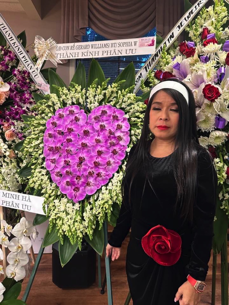 Ảnh mẹ nữ ca sĩ và bố của nữ ca sĩ Bích Tuyền lúc còn sống được các cháu, Sophia (con chung của nữ ca sĩ và ông Gerard hôn má)