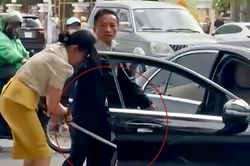 Thấy vậy, người phụ nữ đi cùng B́nh đến can ngăn, giữ lấy cây kiếm và đẩy B́nh lên xe ô tô nhưng B́nh vẫn tiếp tục lấy chai nước suối từ trong xe ném về hướng nhân viên môi trường. Sau đó, người này lái xe chở người phụ nữ bỏ đi.