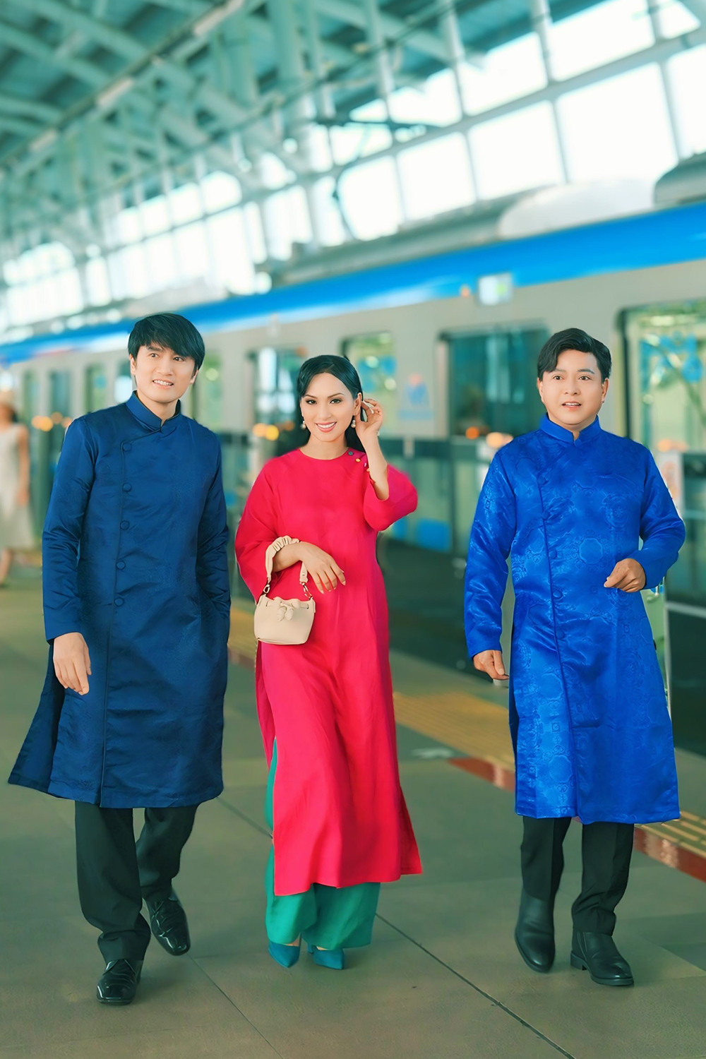 "Ca sĩ tỷ phú" Hà Phương cùng Trần Sang và Thái San thực hiện bộ ảnh áo dài retro tại tuyến metro số 1 TPHCM nhân dịp Tết Ất Tỵ 2025.