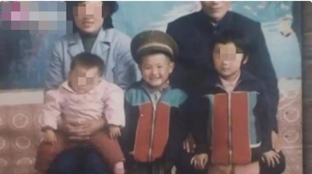 Ảnh chụp khi Vương Cương (giữa) lên 3 tuổi (Ảnh: Ziniu News)