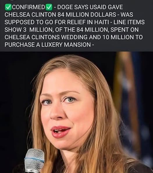 10-DOGE xác nhận đã trả cho Chelsea Clinton 84 triệu để cứu trợ Haiti. Số tiền này được Chelsea Clinton trích ra 3 triệu làm đám cưới và 10 triệu mua nhà.