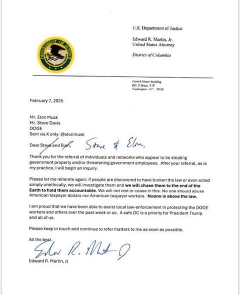 2-Biện lý tại DC, Ed Martin vừa công bố ông sẽ mở cuộc điều tra về việc sử dụng sai mục đích tiền thuế của người dân ( USAID? ) và các mối đe dọa nhắm vào nhân viên DOGE. Hình.