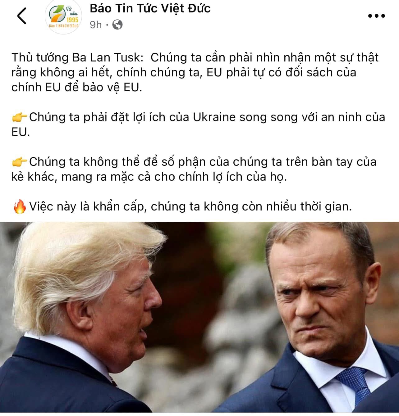 Thông điệp của Trump rất đơn giản. Vấn đề là chúng ta, những người châu Âu, không thể tiếp tục ngồi như những đứa trẻ hờn dỗi, chờ đợi những người lớn ở Washington đưa ra và trả tiền cho một kế hoạch cho Ukraine.Đây là châu lục của chúng ta, tương lai của chúng ta và cho đến nay người châu Âu đã thất bại thảm hại trong việc hoàn thành trách nhiệm của mình.