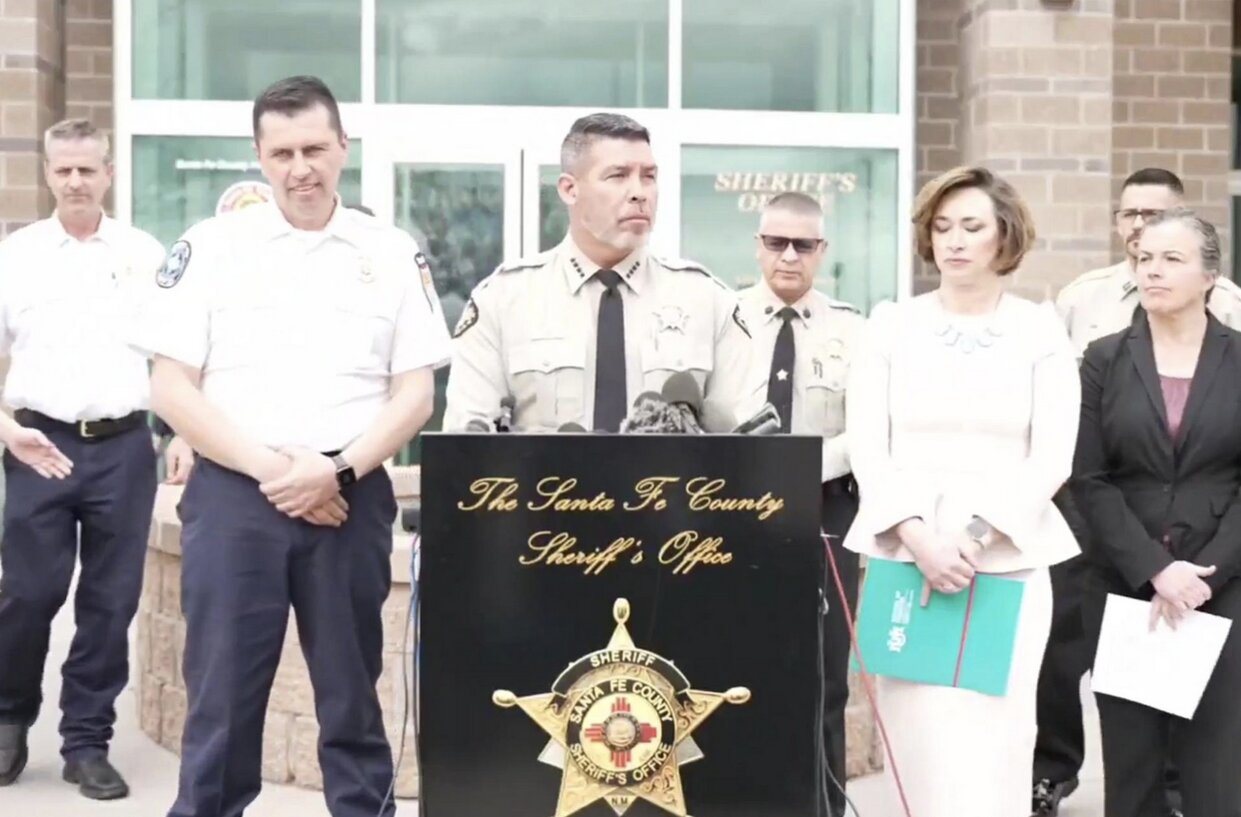 Cảnh sát tổ chức họp báo công bố kết quả giám định y khoa về cái chết của Gene Hackman và vợ. Ảnh: Santa Fe County Sheriff.