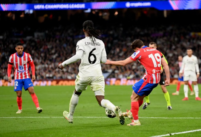 Julian Alvarez cứa lòng ghi bàn trong trận Atletico thua Real 1-2 trên sân Bernabeu, Madrid, Tây Ban Nha ngày 4/3. Ảnh: Reuters