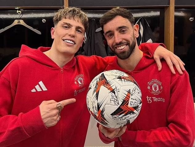 Khi Alejandro Garnacho đăng ảnh chụp cùng Fernandes và trái bóng lên Instagram, nhiều CĐV phát hiện một số lời nhắn trêu đùa.
