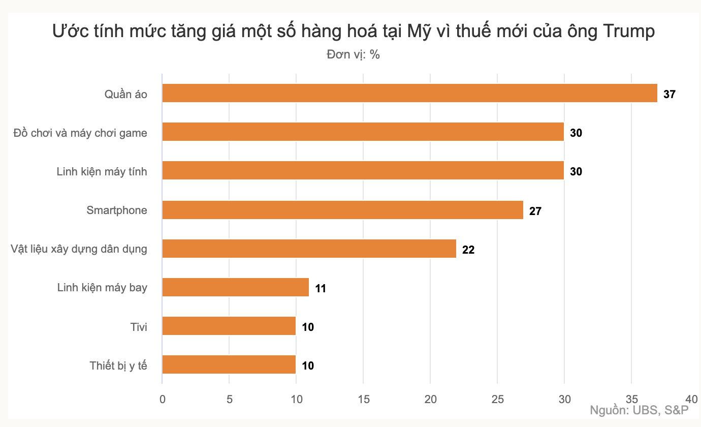 Một phần chi phí tăng lên có thể được tính vào giá bán tới người tiêu dùng cuối cùng. Giới đầu tư đang lo ngại thuế quan khiến giá cả cao, có thể làm suy giảm doanh thu và thu hẹp biên lợi nhuận của doanh nghiệp.