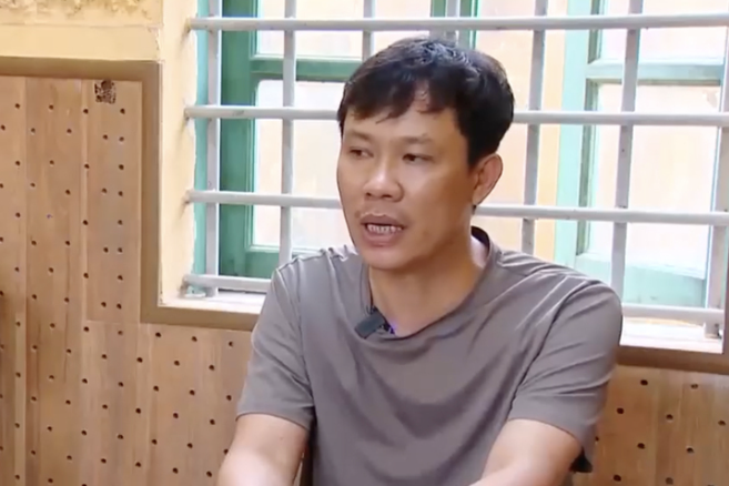 Nguyễn Văn Hưng (Giám đốc Công ty TNHH Famimoto Việt Nam) tại cơ quan Công an. (Ảnh: VTV)