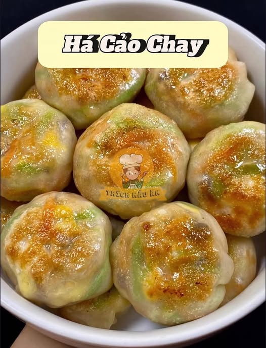 4 . Quét 1 lớp dầu mỏng lên chảo , cho há cảo vào chiên đến khi chín vàng thì lấy ra và thưởng thức