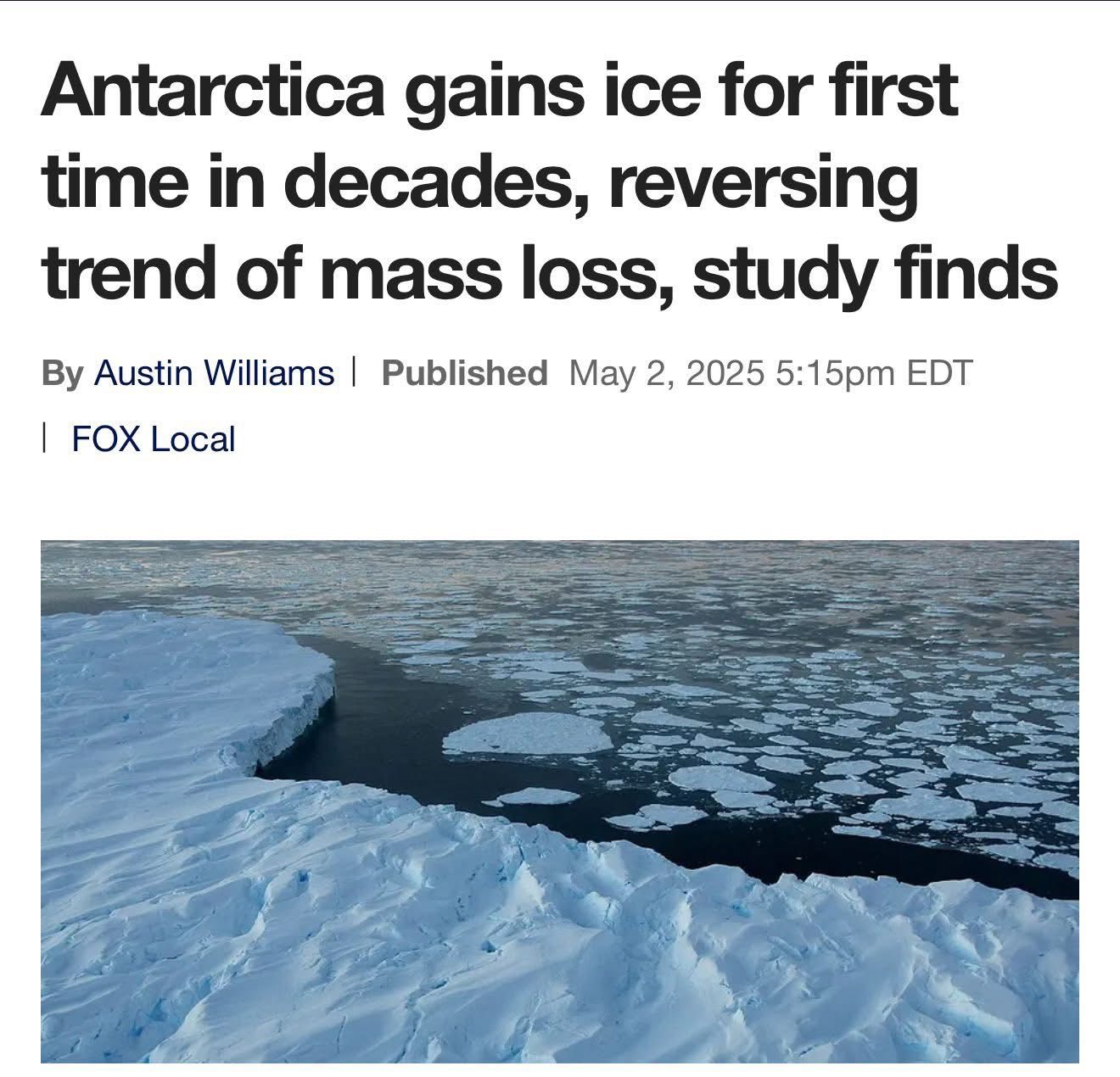 5-Các khoa học gia báo cáo: Nam Cực đang có thêm băng lần đầu tiên sau nhiều thập niên, đảo ngược tình trạng mất băng kéo dài nhiều năm.
