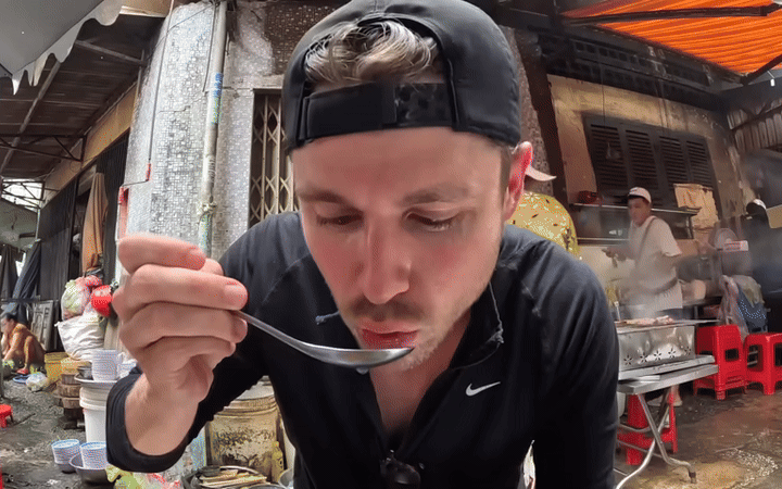 Món ăn chỉ vỏn vẹn 35.000 đồng, tương đương với hơn 1 đô la những lại khiến chàng du khách Mỹ mê mẩn. Anh cho biết thêm mình rất thường xuyên tới khu chợ để thưởng thức những món ăn bình dân song hương vị thơm ngon như thế này.