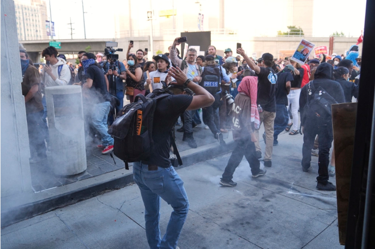 Cuộc trấn áp nhập cư "như chiến dịch quân sự" lập tức làm dấy lên làn sóng biểu tình khắp Los Angles, với hàng trăm người tụ tập ở trung tâm thành phố để yêu cầu thả những người bị bắt. Cuộc biểu tình phần lớn diễn ra ôn hòa và sau đó bị cảnh sát ra lệnh giải tán, song có một số vụ đụng độ gay gắt được ghi nhận.