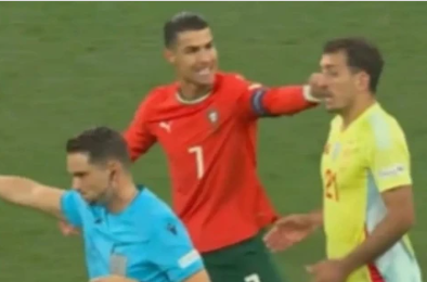 Ronaldo tiếp tục phản ứng mạnh mẽ, cho rằng Le Normand đã phạm lỗi với Bernardo Silva ở pha tranh chấp trước bàn thắng. Tuy nhiên, VAR một lần nữa đứng về phía Tây Ban Nha, công nhận bàn thắng hợp lệ.