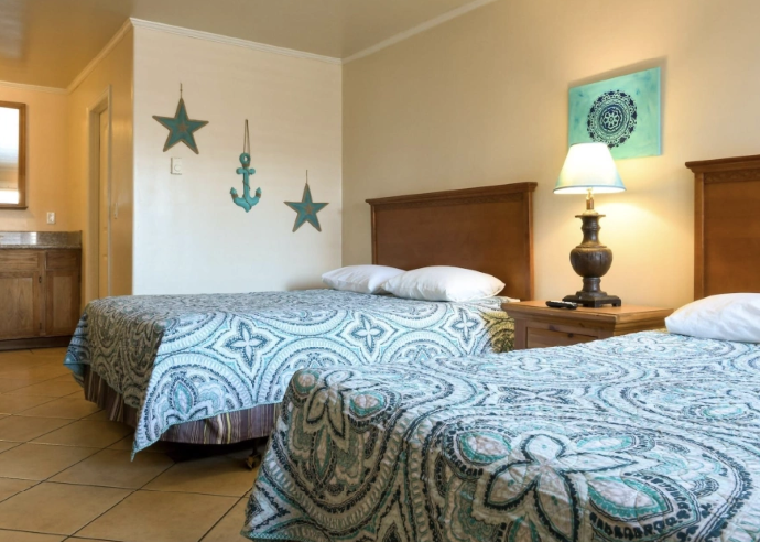 The Shores Inn là khách sạn 2 sao sát bờ biển, giá thuê phòng ở mức trên dưới 4 triệu đồng/phòng/đêm. Dựa trên 412 đánh giá trên Google review, khách sạn được chấm trung bình 3,6/5 sao.