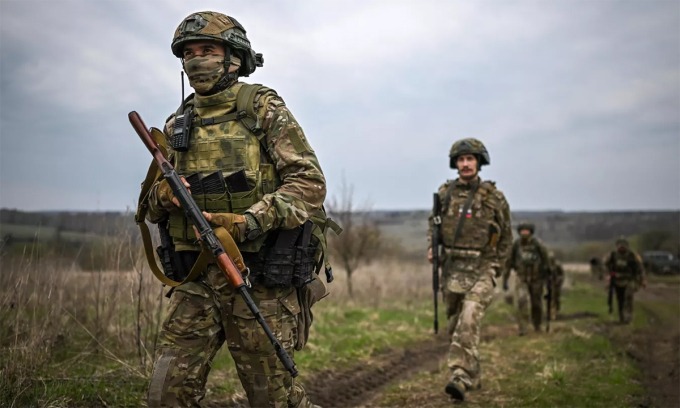 Quân nhân Nga gần tiền tuyến ngày 17/4. Ảnh: BQP Nga