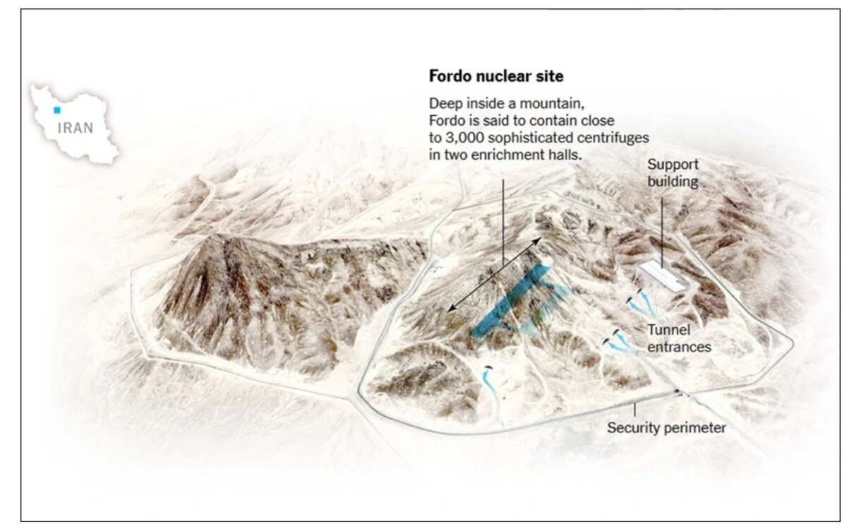 Fordo là cơ sở hạt nhân được Iran bảo vệ chặt chẽ, kiên cố nhất. Cơ sở này được xây dựng sâu bên trong một quả núi để tránh các cuộc tấn công từ bên ngoài.