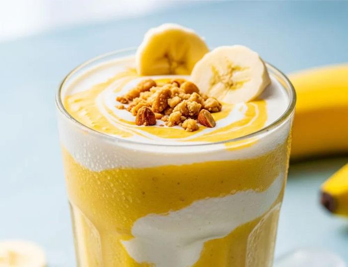 Sinh tố chuối, hạnh nhân là món uống nhẹ nhàng, ít đường, vừa giúp ổn định đường huyết vừa tạo cảm giác no nhẹ trước khi ngủ.
