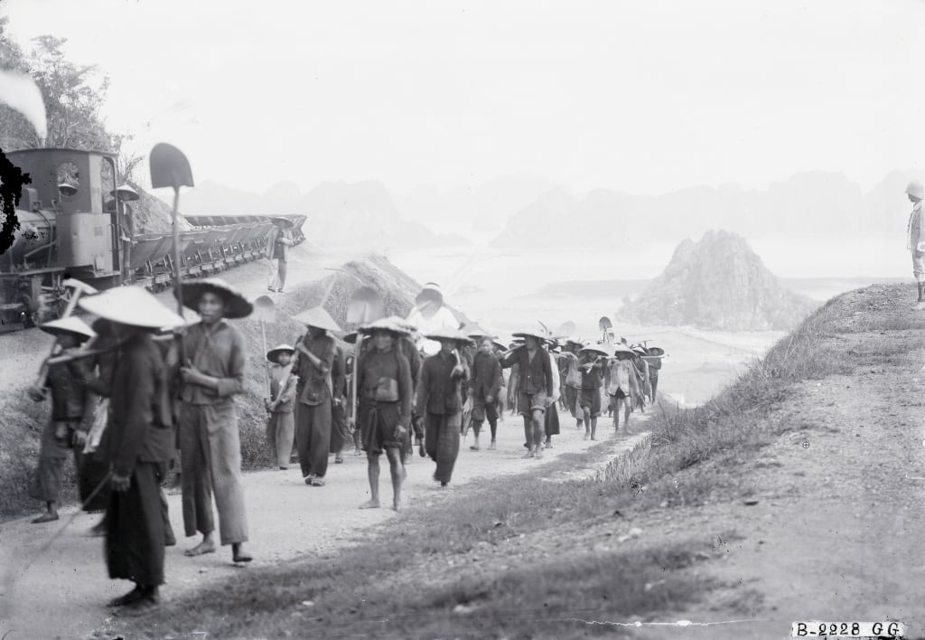 Cảnh công nhân vào ca làm việc tại mỏ than Hòn Gai năm 1929. Nguồn: Flick/Mạnh Hải