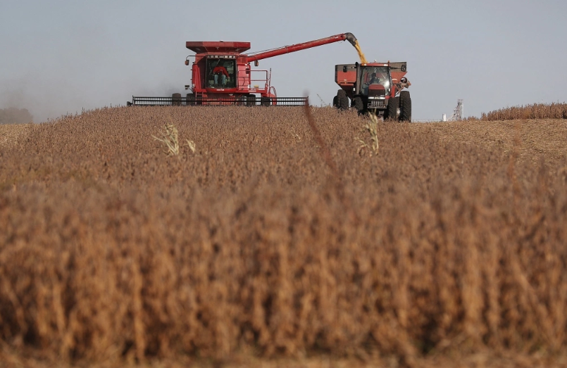 Nông dân thu hoạch đậu nành trên một cánh đồng ở Rippey, bang Iowa tháng 10/2019. Ảnh: AFP