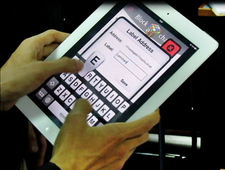 Phía websosanh.vn đang chuyển tiền Bitcoin vào tài khoản của lamchame.com thông qua phần mềm Blockchain chạy trên iPad. Ảnh: H.Đ