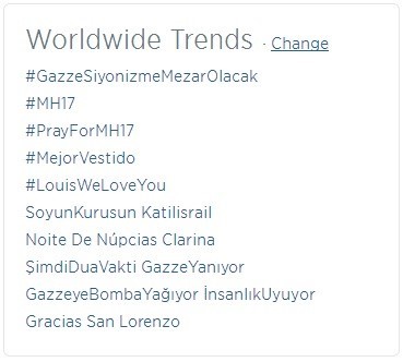 Những thông đến thảm họa hàng không MH17 đứng thứ 2 và 3 trong bảng xếp hạng những vấn đề đang được quan tâm nhất trên Twitter.