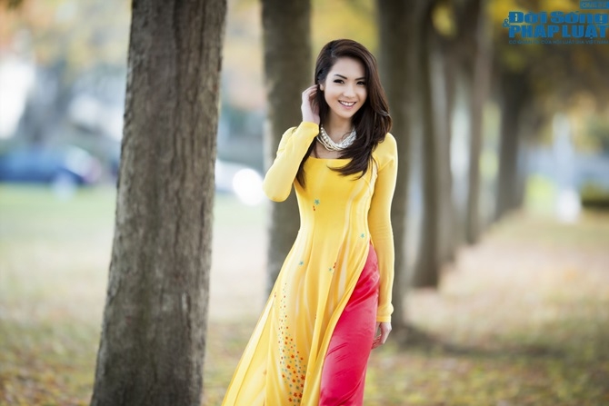 (ĐSPL) - Trong tà áo dài lấy cảm hứng từ mùa thu với sắc cam ngọt ngào của NTK Thuận Việt, Hoa Hậu Jennifer Chung khoe vẻ đẹp tinh khôi và quyễn rũ giữa tiết trời mùa thu trên đất Mỹ.