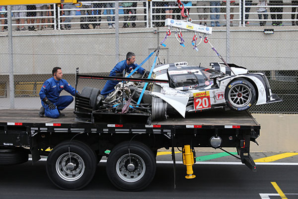 Chiếc xe Porsche 919 của Webber bị hư hỏng nặng sau khi biến thành “quả cầu lửa” trên đường đua. Giải đua World Endurance Championship's 6 Hours of São Paulo đã phải tạm dừng vì vụ tai nạn.