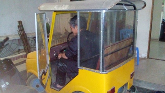 Dù biết không được lưu thông trên đường, nhưng chiếc xe này đối với tôi chỉ là phương tiện đưa đón cháu mỗi lúc đến trường." ông Phạm Đình Công chủ nhân chiếc xe "độc" trên chia sẻ.