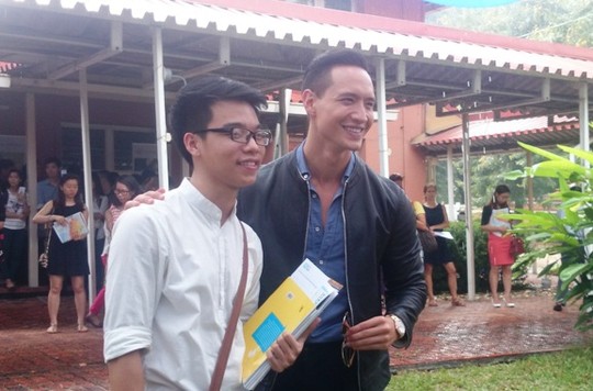 Sau khi trò chuyện với Đại sứ Thụy Điển tại Việt Nam Camilla Mellander, Kim Lý vui vẻ khi được các bạn trẻ xin chụp ảnh cùng. Rất đông các sinh viên, những người đã tốt nghiệp đại học và có kinh nghiệm công tác tới tham dự sự kiện để tìm hiểu việc học tập và nghiên cứu tại Thụy Điển.