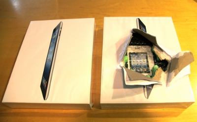 Mặt trước và sau của iPad “cục gạch” khi được lấy ra khỏi hộp. (Hình: Ngọc Lan/Người Việt)
