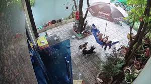 Mới nằm lên thì một bên võng bị đứt dây khiến cô chủ ngã đau xuống đất, hai chú chó đứng bên cạnh cũng không khỏi giật mình. Suýt thì hai chú chó cũng bẹp dí nếu chơi bên dưới võng rồi.