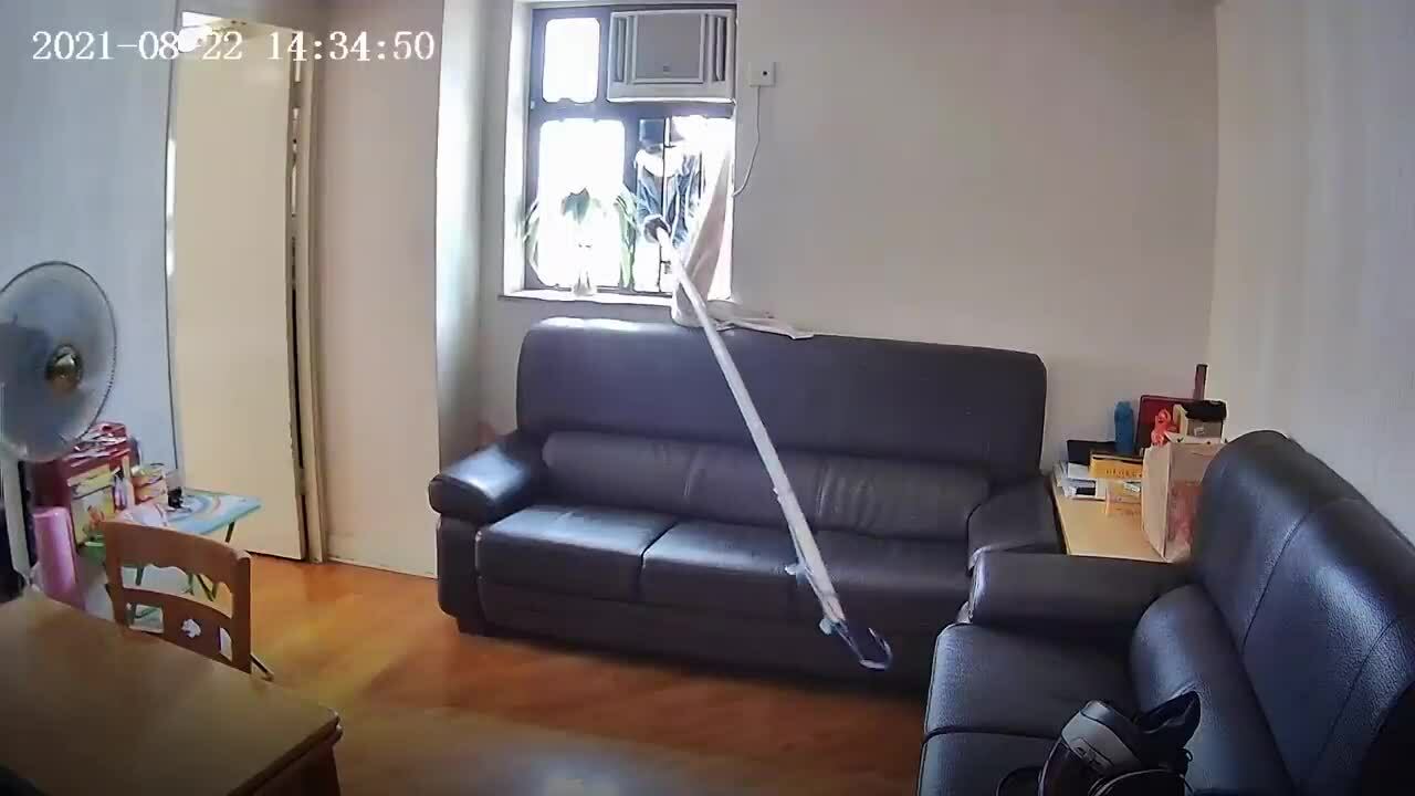 Căn hộ tầng 10 bị tên trộm bịt mặt dùng sào dài gắn móc câu chọc qua cửa sổ lấy đi chiếc túi để trên sofa phòng khách.