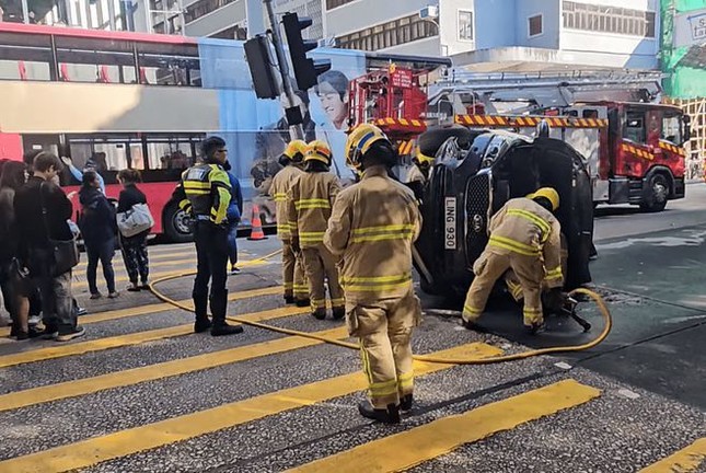 Chiếc xe mất lái lật nhào, may mắn cô đã được mọi người cứu thoát.