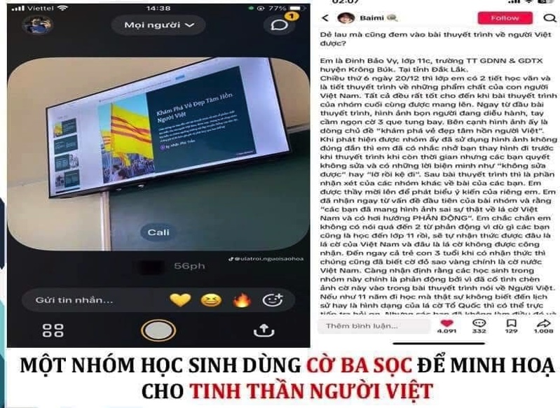 Lá cờ vàng ba sọc không phải là biểu tượng của người Việt Nam, mà là một vết thương lịch sử. Việc đưa hình ảnh đó vào bài thuyết trình không chỉ làm tổn thương đến lòng tự hào dân tộc mà còn xúc phạm đến những hy sinh lớn lao của các thế hệ đi trước vì độc lập và thống nhất đất nước.
