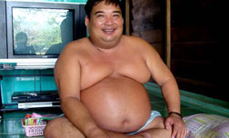 Có khách, người đàn ông khổng lồ này chống tay khó nhọc ngồi dậy. Dù đã được đám xe ôm kể trước, song tôi vẫn không khỏi ngạc nhiên. Ngồi đối diện tôi là một người đàn ông khổng lồ, to hơn cả võ sĩ sumo ở Nhật Bản. Ông có cái bụng tròn, căng núc ních thịt, khuôn mặt phúc hậu, đầy đặn, trông chả khác gì tượng Phật Tổ Như Lai, hay Phật Di Lặc trong những ngôi chùa.